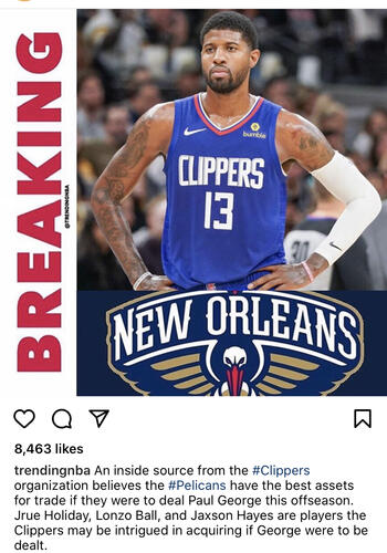 "An inside source from the Clippers thinks the Pels have the best assets to trade for PG"