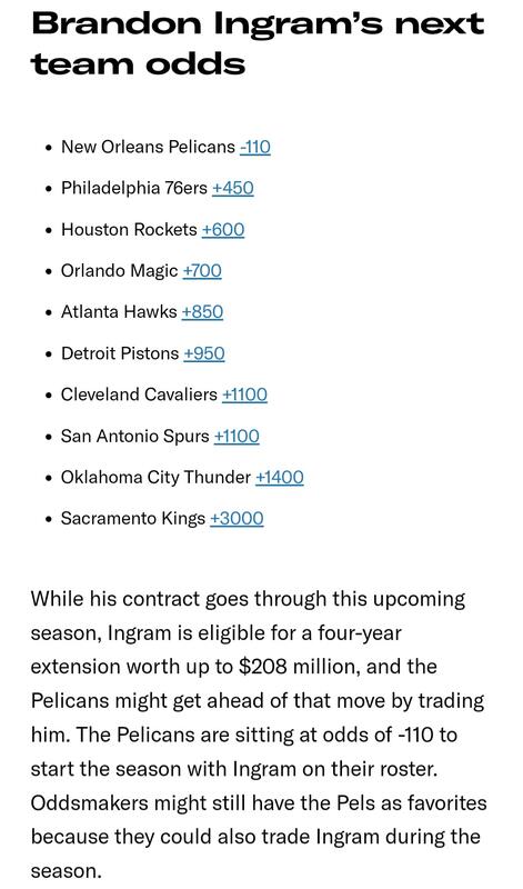 More on Ingram: Sacramento Kings are the front runner but the Pelicans want to get a third team… pic.twitter.com/LelrnmNdgg