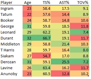 Keep in mind Ingram put up these relative offensive numbers while playing on arguably the least experienced and least talented roster of anyone in this group.